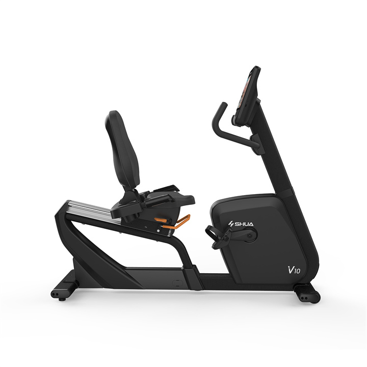 舒華臥式商用健身車SH-B9100U(V10)采用自發(fā)電,40段電磁控阻力系統(tǒng),9.3kg飛輪重量。