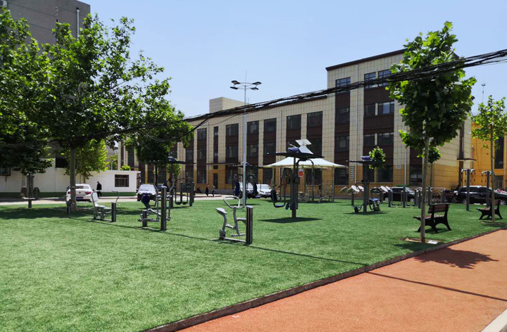 淄博某社區(qū)為了方便社區(qū)內(nèi)人員使用健身器材,通過VSPORTS体育官网體育的設(shè)計,合理布局,搭建了以舒華智能健身驛站為主的戶外健身器材口袋公園。